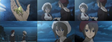 然後紗音拿出胸針說要還給ベアト,但她卻希望紗音繼續帶著,這樣子兩人的感情會堅如磐石